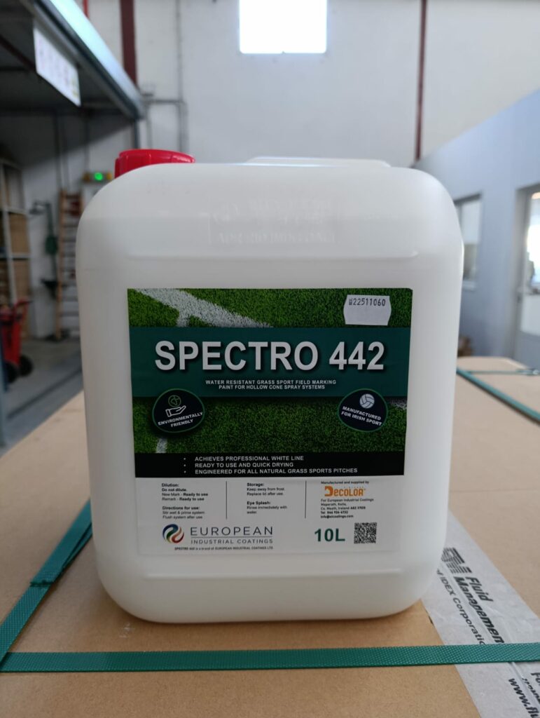 Developed using advanced pigmentation and atomisation technology, SPECTRO 442 is designed to meet the rigorous demands of Irish weather and intensive use by GAA, Soccer, and Rugby clubs nationwide.